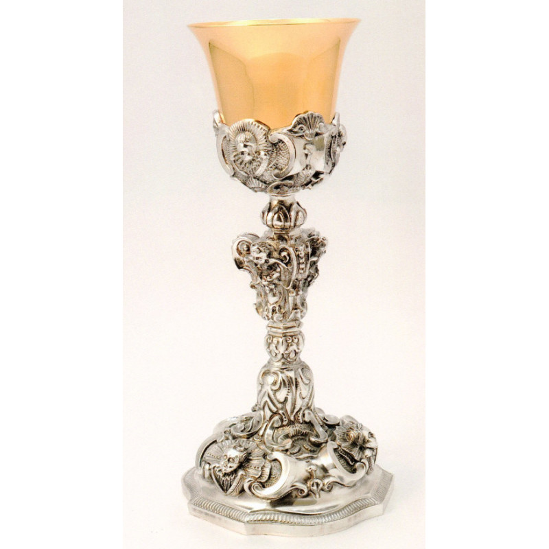 Calice in ottone argentato con coppa svasata, altezza 26 cm diamentro 9,5 cm.