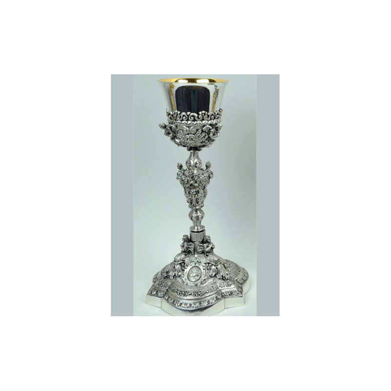 Calice in argento cesellato, coppa svasata, altezza cm 30 diametro cm 9