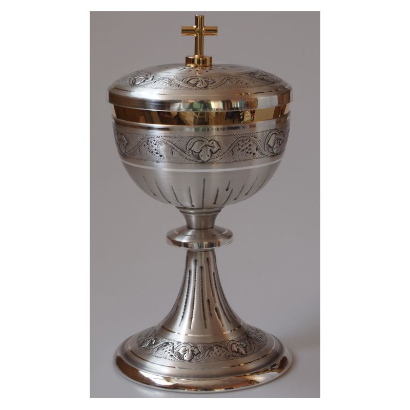 Pisside cesellata e argentata, h. cm 20 Ø 10