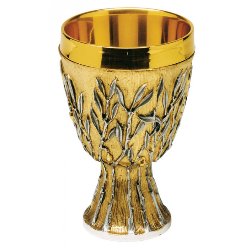 Calice in ottone bicolore di fusione a cera presa. Altezza cm 16 diametro cm 10,5