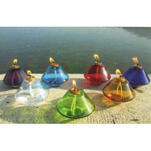 Lampada ad olio colorate, in cristallo di Bohemia, soffiati e lavorati a mano.