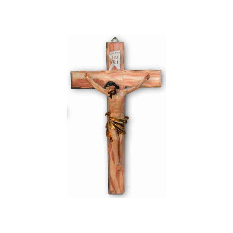 Crocifisso in nlegno d'ulivo con corpo in resina dipinto a mano.