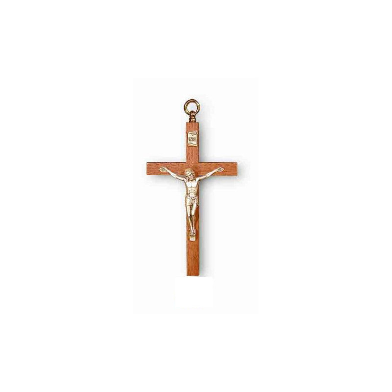 Crocifisso in ciliegio con corpo in metallo.