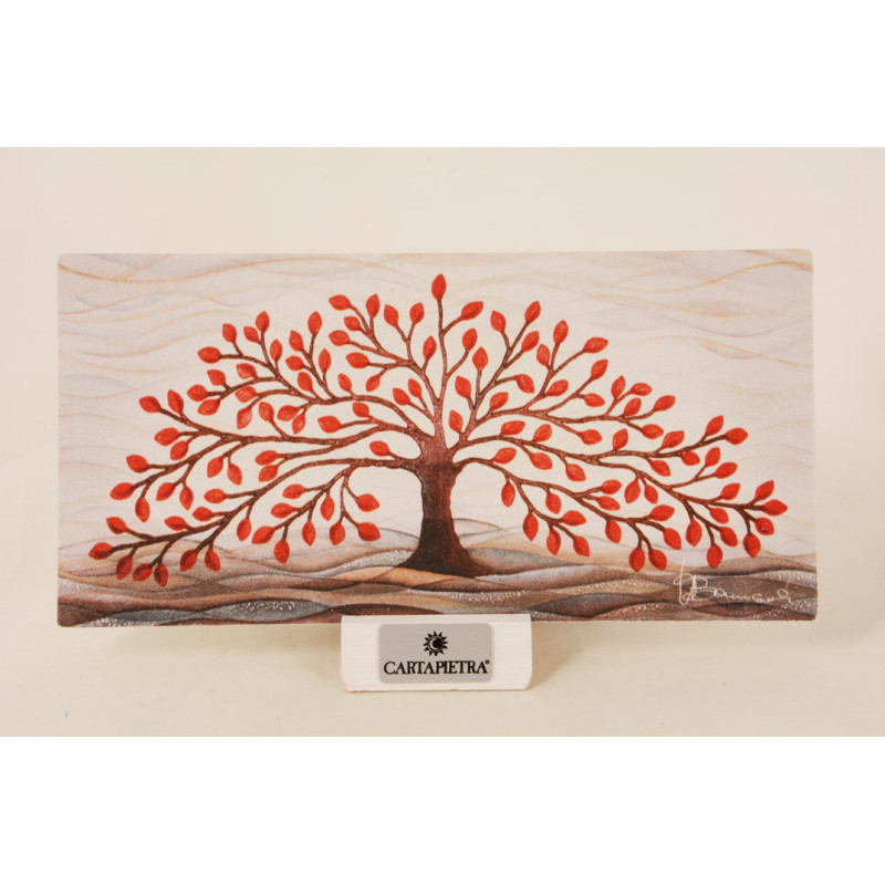Quadretto Albero della Vita rosso cm 20X10 con base d'appoggio e foro per eventuale affissione a muro.