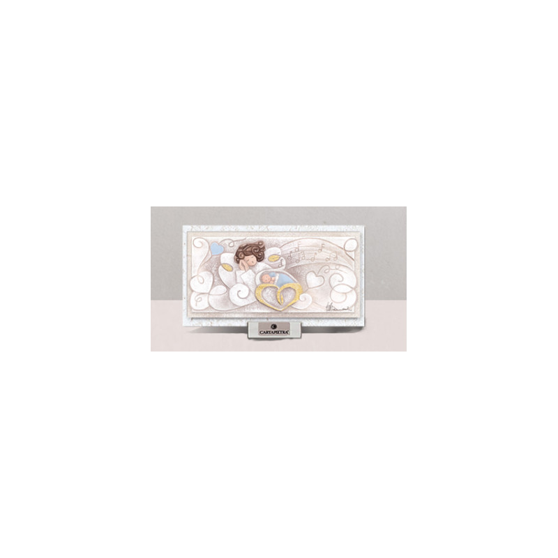 Quadretto battesimo Melodie d'Amore azzurro cm 20X10 con base d'appoggio e foro per eventuale affissione a muro.
