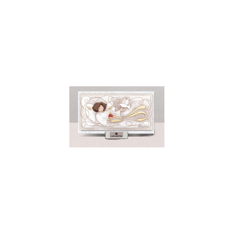 Quadretto Cresima Luce della Purezza cm 20X10 con base d'appoggio e foro per eventuale affissione a muro.