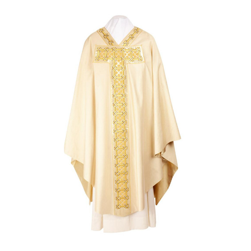 Casula in seta con collo a "V" e stolone in seta lurex.