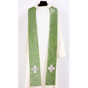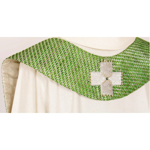 Stola in Lana/viscosa, foderata in seta. La croce è ricamata direttamente sul tessuto e finita con perle.