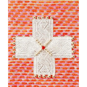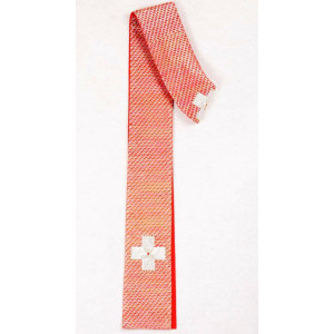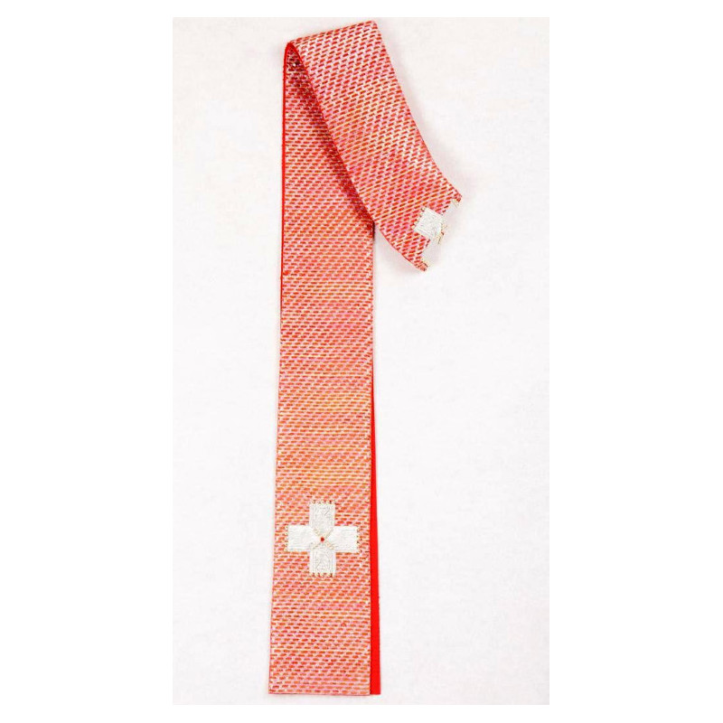 Stola in Lana/viscosa, foderata in seta. La croce è ricamata direttamente sul tessuto e finita con perle.