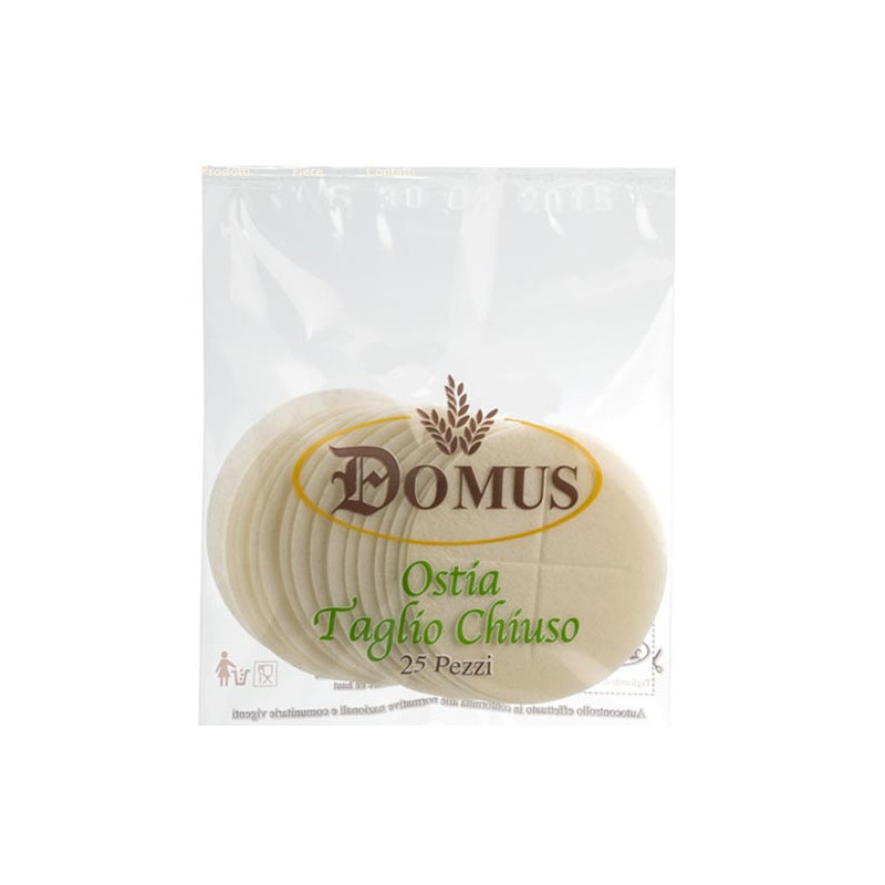 Ostia per celebrazione, la particolare tecnica di taglio la rende meno soggetta alla produzione di bricciole. Prodotta nell'assoluto rispetto delle regole canoniche.
