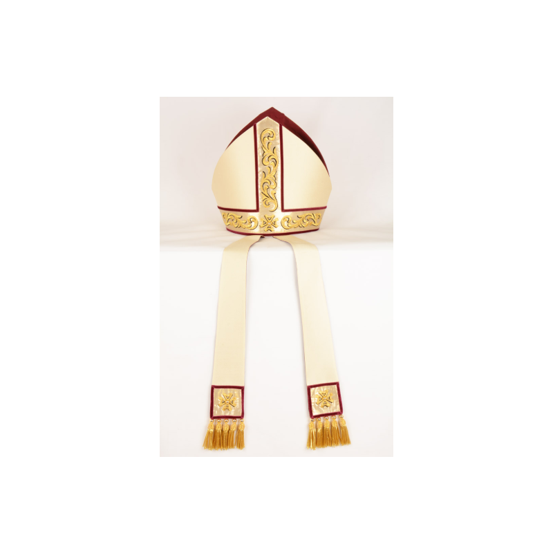 Mitra in pura seta, elegante e solenne, lavorazione sopraffina.