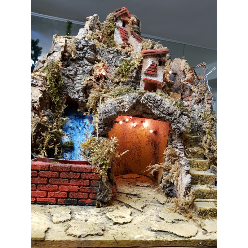 Paesaggio artigianale napoletano, con luci e cascata funzionante.