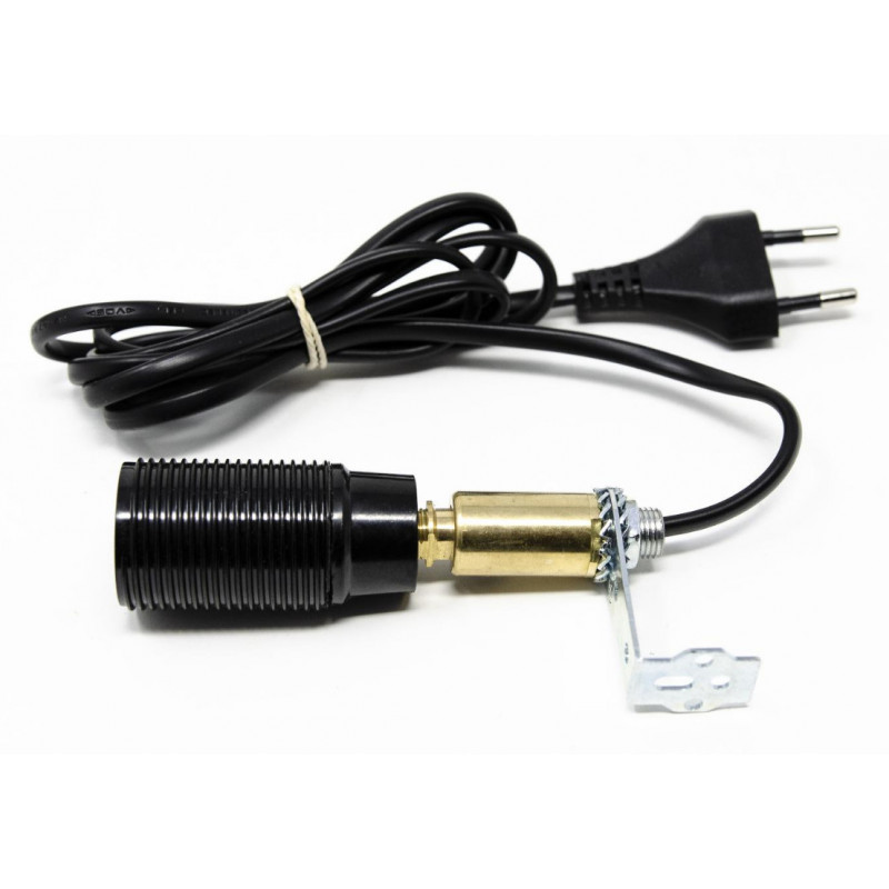 Portalampada con snodo orientabile completo di cavo di alimentazione e spina. Colore nero. Attacco E14