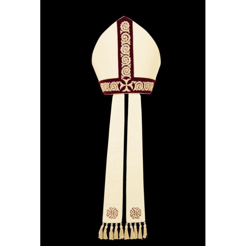 Mitra ricamata a mano in elegante tessuto di lana viscosa.