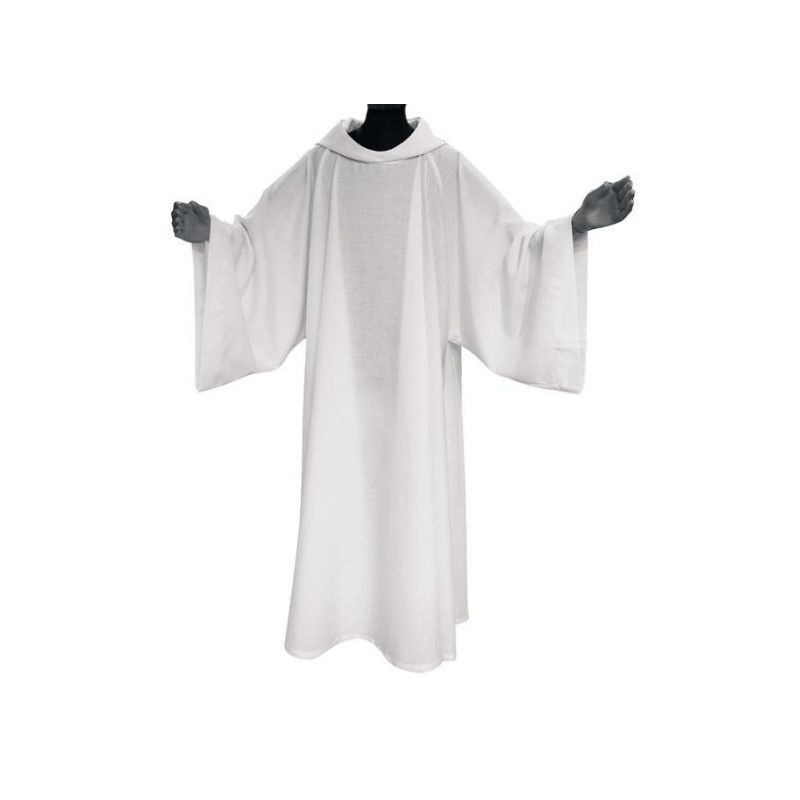 Camice in Tessuto Sahara poliestere viscosa, lavorazione grezza, tinta sabbia , scampanato molto ampio, con manica a reglan e vero cappuccio indossabile. Confezione sartoriale.